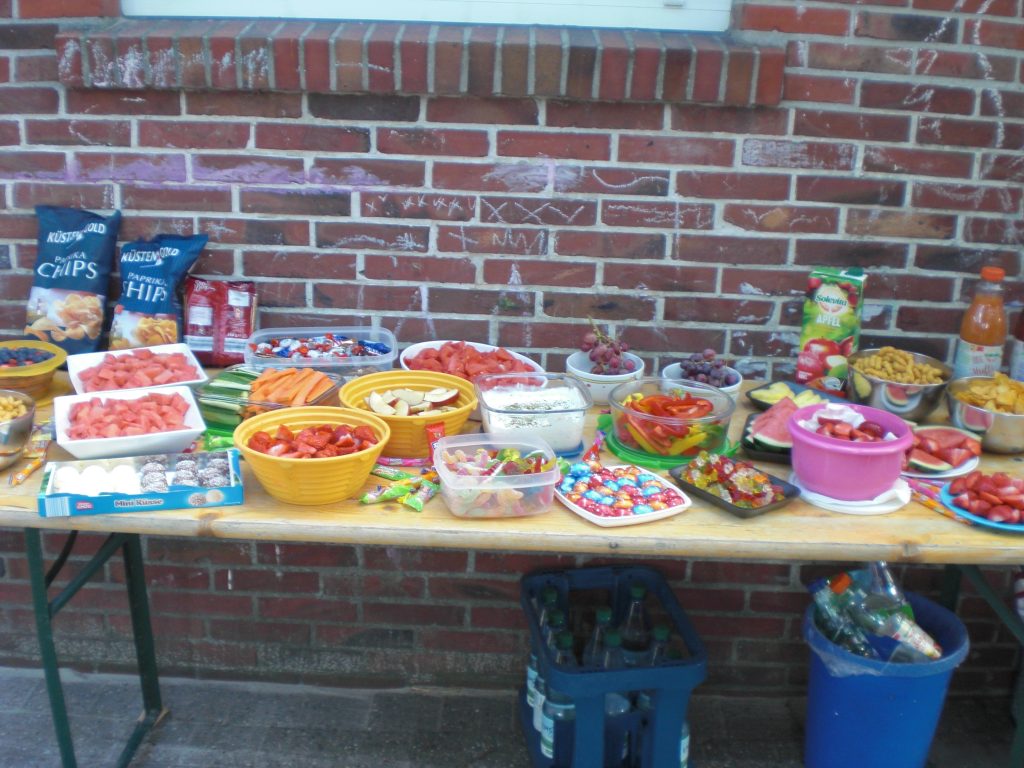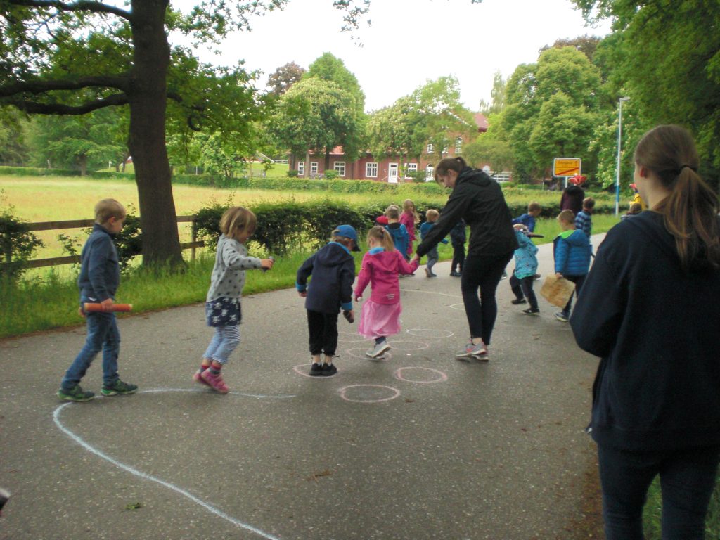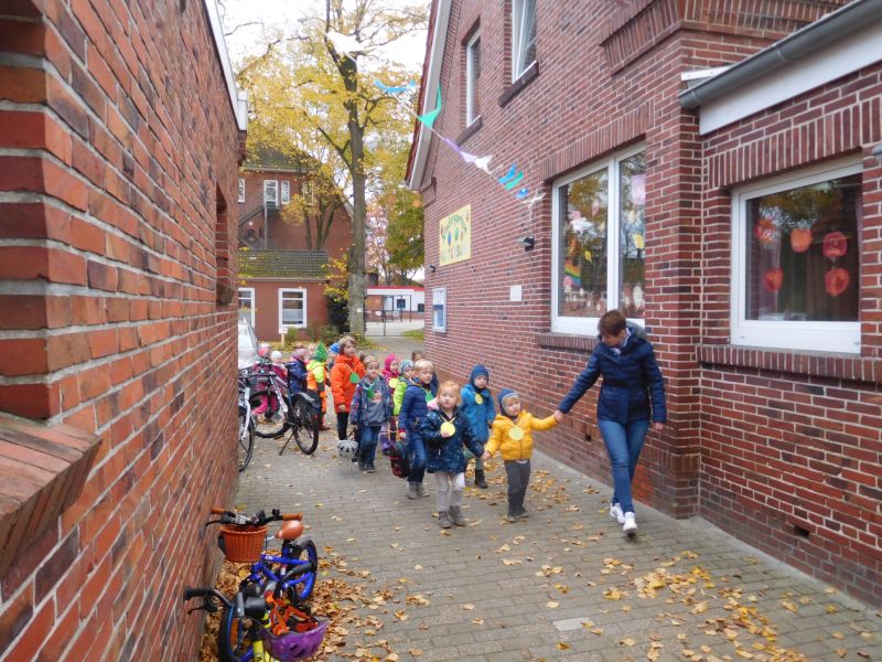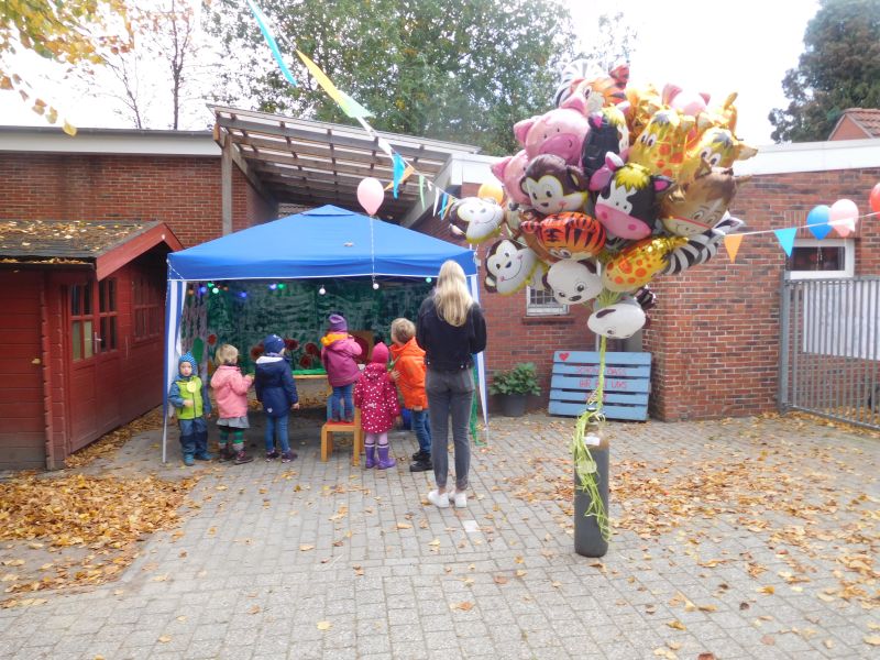 Wuppi Sprachbildung ist ein fester Bestandteil unserer Arbeit und findet täglich alltagsintegriert statt. Ab der Koboldgruppe startet unser Sprachprogramm mit Wuppi. Die Kinder werden in verschiedenen Bereichen wie z.B. das Zuhören, Lokalisierung der Geräusche, Lautbildung, Silbentrennung usw. gefördert. Vorschularbeit Die Vorschularbeit findet bei uns täglich statt. Es werden spielerisch grundlegende Kompetenzen, die für die Schule wichtig sind, vermittelt. Die Kinder erhalten spezielle Angebote, um die Wahrnehmung und die Feinmotorik zu schulen. Jolinchen-Projekt Seit dem letzten Jahr nehmen wir am Jolinchen-Projekt der AOK teil. Das Projekt ist fester Bestandteil der wöchentlichen/monatlichen Aktionen geworden. Die gesunde Ernährung ist für uns im Kindergarten sehr wichtig. Spielerisch erklären wir den Kindern durch das Projekt, welche Lebensmittel gesund/ungesund sind, wie wichtig Bewegung ist und was unser Körper alles braucht. Lubo aus dem All In der Riesengruppe/Vorschulgruppe ist das Projekt „Lubo aus dem All“ für die Förderung der emotionalen und sozialen Entwicklung sehr wichtig. Spielerich wird den Kindern gezeigt, was Gefühle sind, wie man Gefühle benennen kann und wie der Umgang miteinander gut funktioniert. Musik mit Andrea Seit 2019 kooperieren wir mit der Kreismusikschule Leer. Immer montags begleitet uns Andrea Kuper musikalisch durch den Tag.